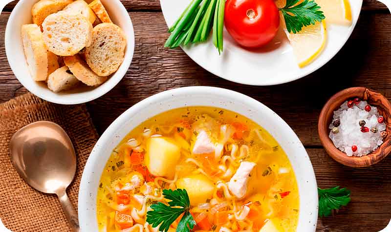 Já os legumes, podem ser usados os mais diversos, como chuchu, abóbora, abobrinha, berinjela, brócolis, couve-flor, cenoura. Além das verduras, como couve, espinafre, repolho, que podem ser usadas batidas ou apenas fatiadas, para dar uma consistência diferente nas sopas cremosas.