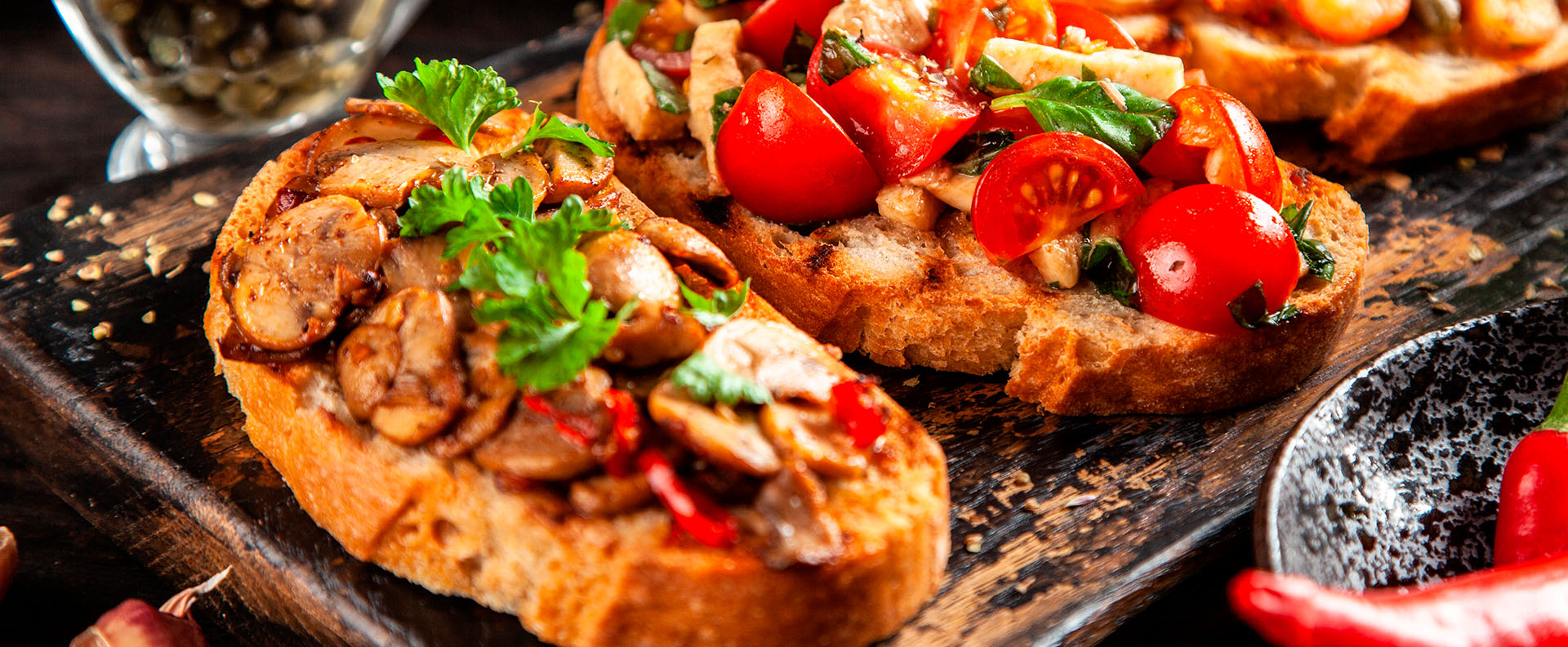 Essa brusqueta também fica perfeita com cogumelo shitake.