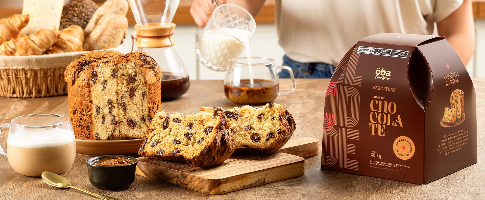 Para convencer você a saborear panettone com café, é preciso falar sobre os sabores. Ah, os sabores! Expressando um pouco do sentimento que é ser parte da família Oba Bem Querer, nossos panettones traduzem o otimismo, felicidade, esperança e harmonia que é cada pedaço. Afinal, todo dia é dia de panettone, ainda mais se for Oba Bem Querer. Além da massa de fermentação natural, com a textura leve e perfeita, trouxemos os clássicos que todo mundo gosta, com o nosso toque especial.Na Linha Tradicional Oba Hortifruti, você vai encontrar a clássica combinação de frutas cristalizadas e o panettone com gotas de chocolate ao leite. Além disso, temos a novidade do brigadeiro de pistache, com uma cobertura de chocolate branco deliciosa, pistache moído e recheio cremoso.E na nossa linha premium, você pode aproveitar alguns dos mesmos sabores com um toque artesanal, como o de frutas cristalizadas, gotas de chocolate e brigadeiro de pistache. Ainda com a novidade do sabor trufado de chocolate ao leite. Essas escolhas são uma verdadeira união entre tradição e celebração, e podem fazer parte de qualquer momento do dia. E a melhor companhia? Um cafezinho quente, é claro! A harmonização do café com panettone é simplesmente irresistível. O café, repleto de notas aromáticas e sabor intenso, combina perfeitamente com as frutas cristalizadas. Com o chocolate, nem precisamos dizer. Afinal, um toque doce no dia a dia deixa tudo perfeito! A ideia da nossa linha é transmitir todo o conforto e aconchego que as nossas comidas preferidas nos trazem. Celebrar a família, os amigos e a união que costumamos compartilhar nas festas, e que pode transformar todos os dias do nosso ano!