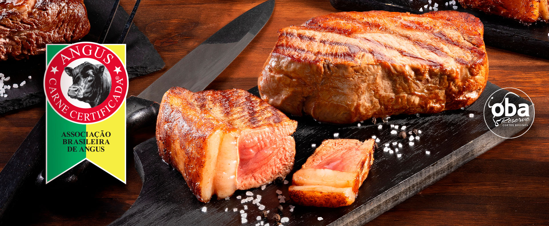 Por isso, a linha Oba Reserve conta com o selo de qualidade da Associação Brasileira de Angus. A nossa marca exclusiva se consolida como premium, e uma das seleções com mais alta qualidade do mercado, trazendo cortes nobres para todas as ocasiões.