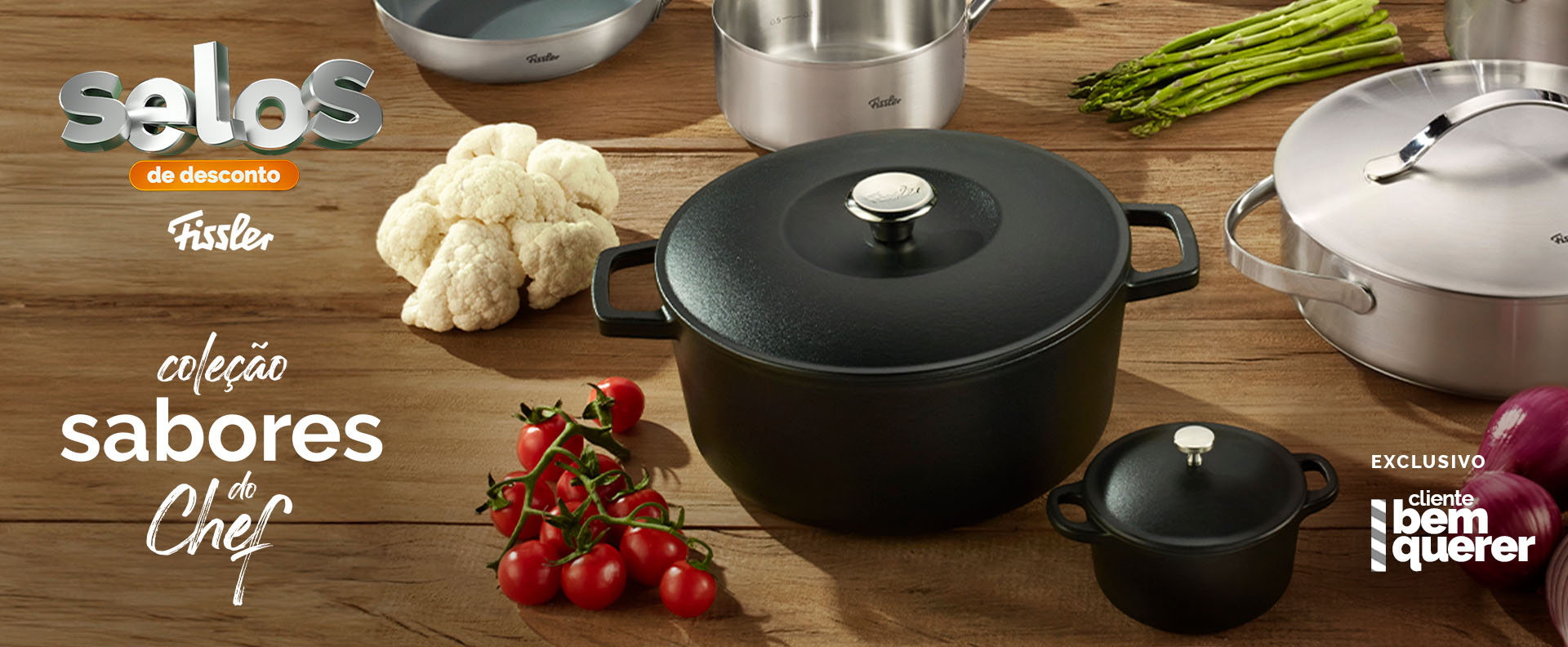 A campanha “Sabores do Chef” garante acesso à linha de utensílios de cozinha da marca Fissler, que reúne design impecável, tradição e qualidade. Além disso, a campanha inclui uma caçarola de ferro fundido de 10 cm, desenvolvida especialmente para essa promoção e não pertencente a Fissler.