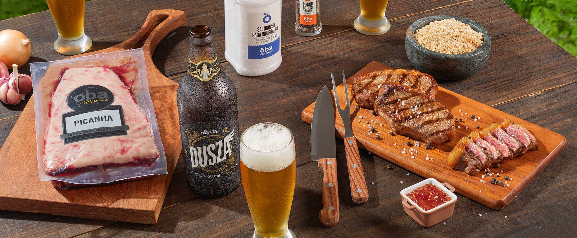 • 1 peça de picanha Oba Reserve cortada em fatias de 3 cm de espessura