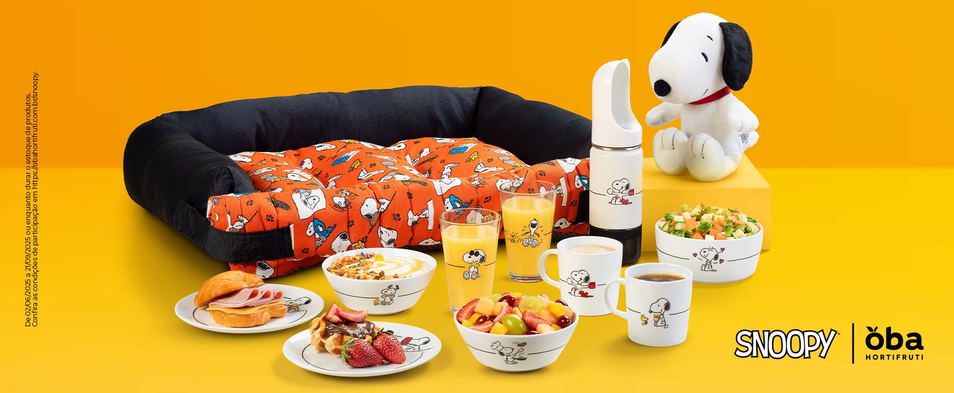 Em celebração aos 75 anos da Peanuts, o Oba apresenta itens exclusivos e colecionáveis para você. São 8 produtos inspirados no Snoopy, pensados para toda a sua família, com opções para dividir momentos especiais e até uma linha incrível para o seu pet!